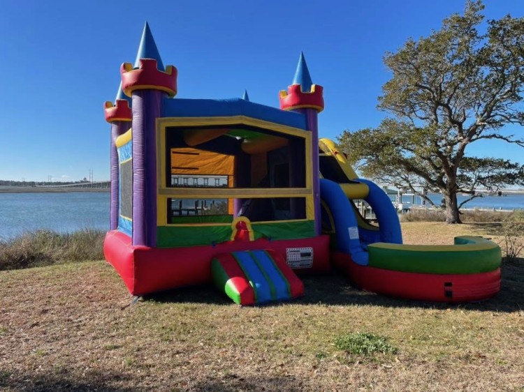 Bring the fun and color to your next event! This unit features a spacious bounce area, basketball hoop, and an exciting slide that leads into a refreshing splash pool (can be used wet or dry).