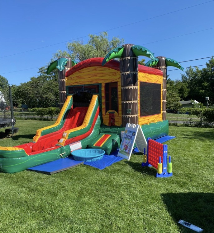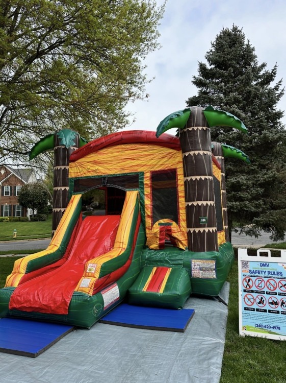 Bring the tropical vibes to your backyard bash or summer celebration with our palm tree bounce house water slide with pool. Contact us today to reserve this exciting inflatable attraction and make your event a splash-worthy success! 🌴🌊☀️
