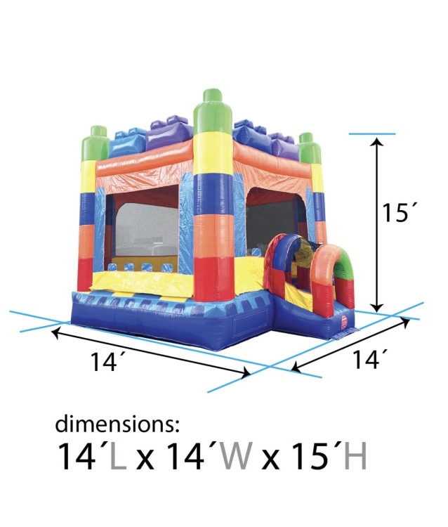 - OCCUPANCY: A maximum of 5-6 kids of equal size at one time for bounce houses, and 1 person at a time for slides is what most inflatable manufacturers recommend.