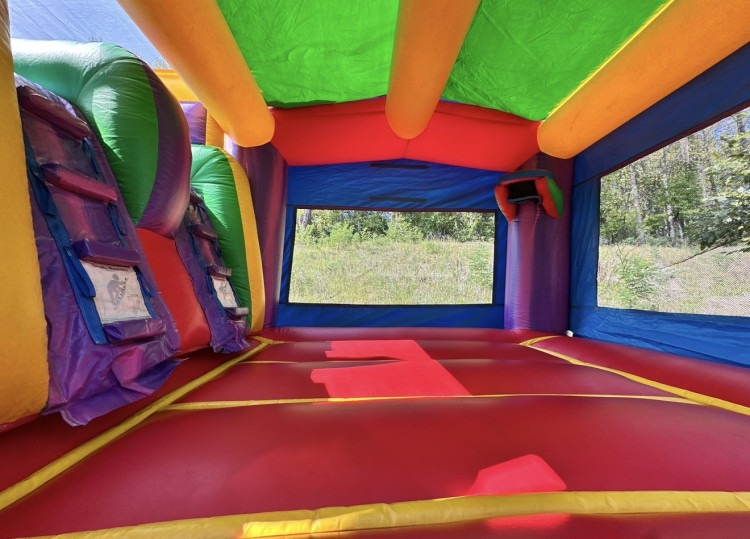 Introducing the ultimate luck– 🎉 featuring rainbow colors, our bounce house water slide is complete with a double slide!! 🛝 Also features a basketball hoop perfect for all ages!!🏀