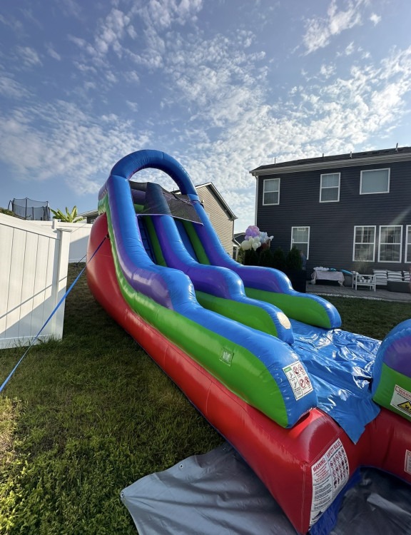 With its eye-catching rainbow design and bold, neon colors, our Retro Rainbow Inflatable Water Slide stands out as a focal point of excitement and joy. Whether you're hosting a backyard birthday party, or family picnic, this inflatable attraction guarantees non-stop fun and laughter.